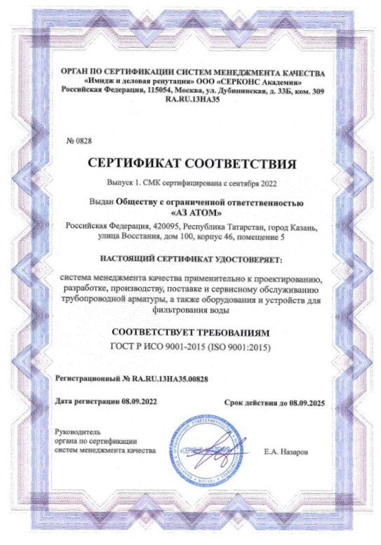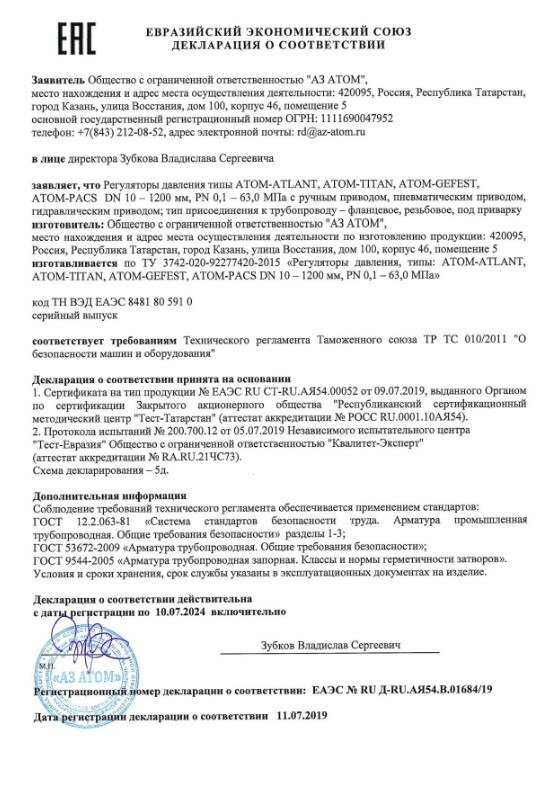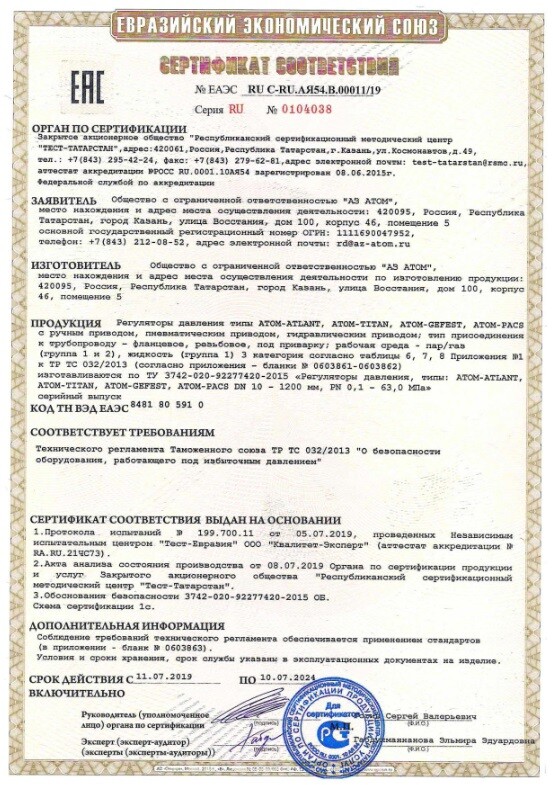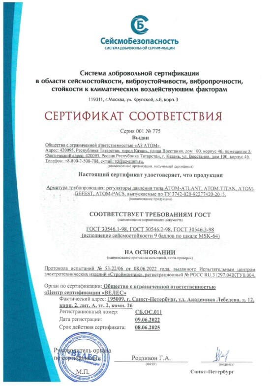 Регулятор давления серии АТОМ — автономное устройство, предназначенное для поддержания постоянного давления в трубопроводе, вне зависимости от колебаний давления и расхода на выходе. Регулирование обеспечивается автоматическим изменением степени открытия дросселирующего органа регулятора, вследствие чего автоматически изменяется гидравлическое сопротивление проходящему потоку среды.